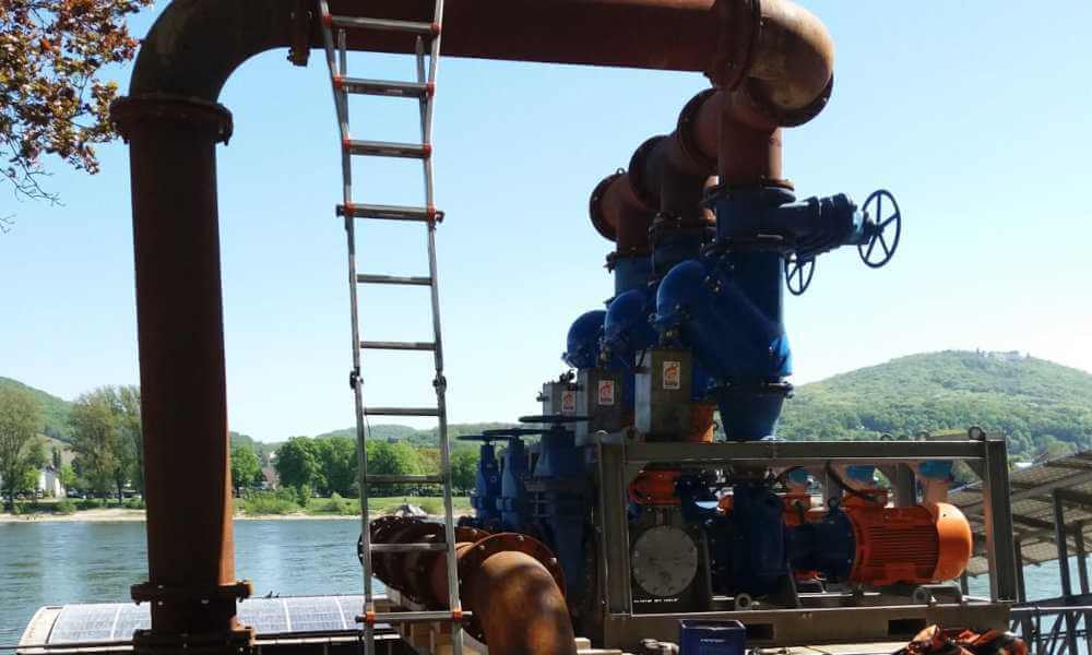 - Aufwändige Wasserhaltung zur Überbrückung des Dükers mit 24 h Notdienst.